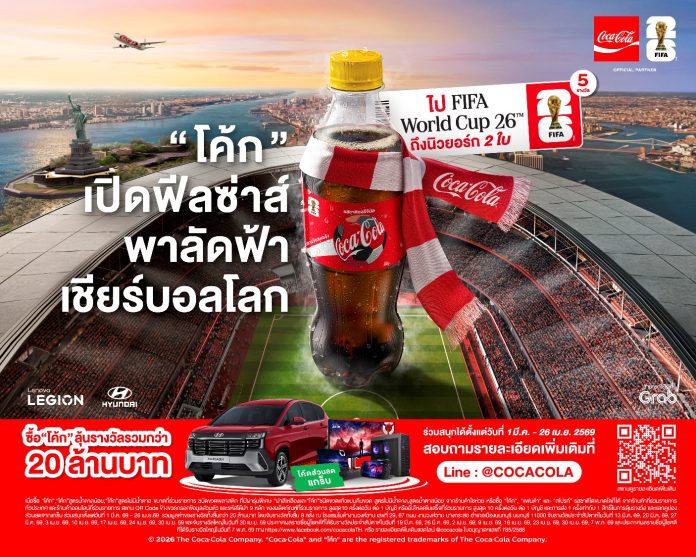 ทั้งนี้ โคคา-โคล่า เป็นพันธมิตรอย่างเป็นทางการของ FIFA มาอย่างยาวนานนับตั้งแต่ปี 2519 และเป็นผู้สนับสนุนหลักอย่างเป็นทางการของการแข่งขันฟุตบอลโลก FIFA World Cup ตั้งแต่ปี 2521 เป็นต้นมา โดยในปี 2569 นี้ โคคา-โคล่า ประเทศไทย ก็ได้เตรียมกิจกรรมไว้อีกมากมายที่จะสร้างความตื่นเต้นให้กับแฟนฟุตบอล รวมถึงผู้บริโภคชาวไทย ให้ได้ดื่มด่ำกับช่วงเวลาสุดพิเศษตลอดทั้งปี ไม่ว่าจะเป็นในฤดูกาลการแข่งขันฟุตบอลโลก หรือการกลับมาของฟุตบอลลีกเยาวชนไทยที่หลายคนรอคอยอย่าง “โค้ก® คัพ” โดยสามารถติดตามข่าวสารอัปเดตเกี่ยวกับกิจกรรมจาก โคคา-โคล่า ประเทศไทย ได้ที่เฟซบุ๊ก Coca-Cola Thailand