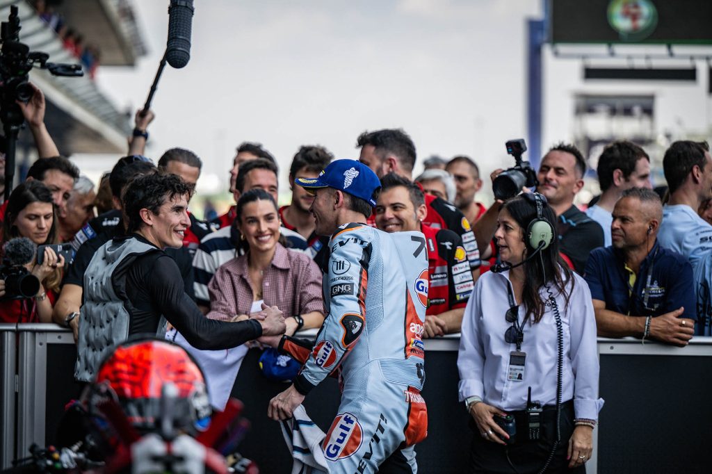 เกมเรซนี้ดวลกันทั้งสิ้น 13 รอบสนาม โดย มาร์เกซ ชิงจังหวะออกตัวได้อย่างยอดเยี่ยม ก่อนจะเสียบแซงขึ้นมาเป็นผู้นำได้ตั้งแต่โค้งแรก ซึ่งหลังจากนั้นที่โค้ง 3 อเล็กซ์ มาร์เกซ น้องชายจาก เกรซินี เรซซิ่ง หนึ่งในตัวเต็งลุ้นแชมป์ ควบคุมรถไม่อยู่จนบานออกนอกแทร็ก พร้อมกับพาให้ ฟาบิโอ ดิ จิอันนันโตนิโอ นักบิดอิตาเลียนจาก เปอร์ตามิน่า เอ็นดูโร วีอาร์46 เรซซิ่ง เสียจังหวะหลุดออกไปทั้งคู่