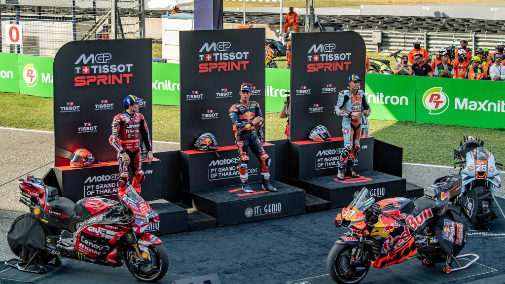 ศึก โมโตจีพี 2026 เปิดฉากดวลสนามแรก “พีที กรังด์ปรีซ์ ออฟ ไทยแลนด์” ด้วยความมันส์ระดับ 5 ดาว เปโดร อคอสต้า นักบิดสแปนิชจาก เคทีเอ็ม งัดฟอร์มโหดไล่บี้ มาร์ค มาร์เกซ แชมป์โลกจาก ดูคาติ ที่โดนปรับโทษอย่างสุดมันส์จากดราม่าโค้ง 12 ส่งผลให้ “เบบี้ชาร์ค” ผงาดคว้าชัยชนะครั้งแรกของตัวเองใน “พรีเมียร์คลาส” และสร้างสถิติเป็นนักบิดอายุน้อยที่สุดในประวัติศาสตร์ที่เข้าวิน “สปรินต์เรซ”