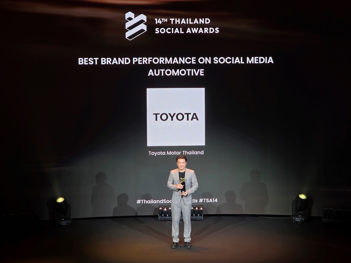 บริษัท โตโยต้า มอเตอร์ ประเทศไทย จำกัด คว้ารางวัล “BEST BRAND PERFORMANCE ON SOCIAL MEDIA” หรือ แบรนด์ที่ทำผลงานยอดเยี่ยมบนโลกโซเชียลมีเดียสาขากลุ่มธุรกิจรถยนต์ 6 ปีซ้อน (2021-2026) จากการประกาศรางวัล THAILAND SOCIAL AWARDS ครั้งที่ 14 โดยมี นายสุพฤติ ทิพยะวัฒน์ ผู้อำนวยการฝ่ายการปฏิรูปทางดิจิทัล เป็นตัวแทนรับมอบรางวัล เมื่อวันที่ 25 กุมภาพันธ์ ที่ผ่านมา ณ ทรู ไอคอน ฮอลล์ ไอคอนสยาม ชั้น 7