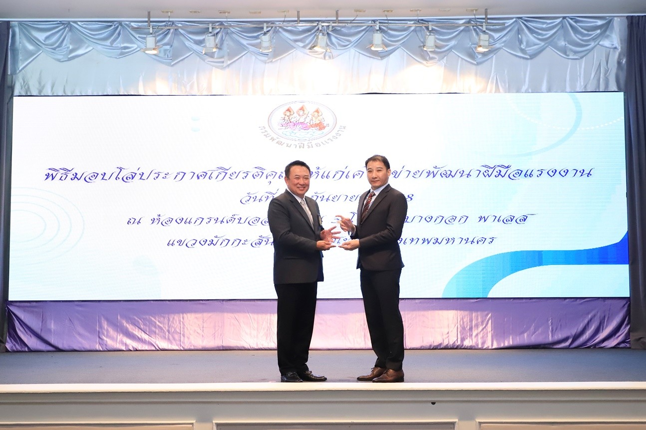 บริษัท โตโยต้า มอเตอร์ ประเทศไทย จำกัด รับมอบโล่ประกาศเกียรติคุณเครือข่ายพัฒนาฝีมือแรงงาน จาก นายเดชา พฤกษ์พัฒนรักษ์ อธิบดีกรมพัฒนาฝีมือแรงงาน เมื่อวันที่ 20 กันยายน 2568 ณ ห้องแกรนด์บอลรูม ชั้น 3 โรงแรมบางกอก พาเลส กรุงเทพมหานคร