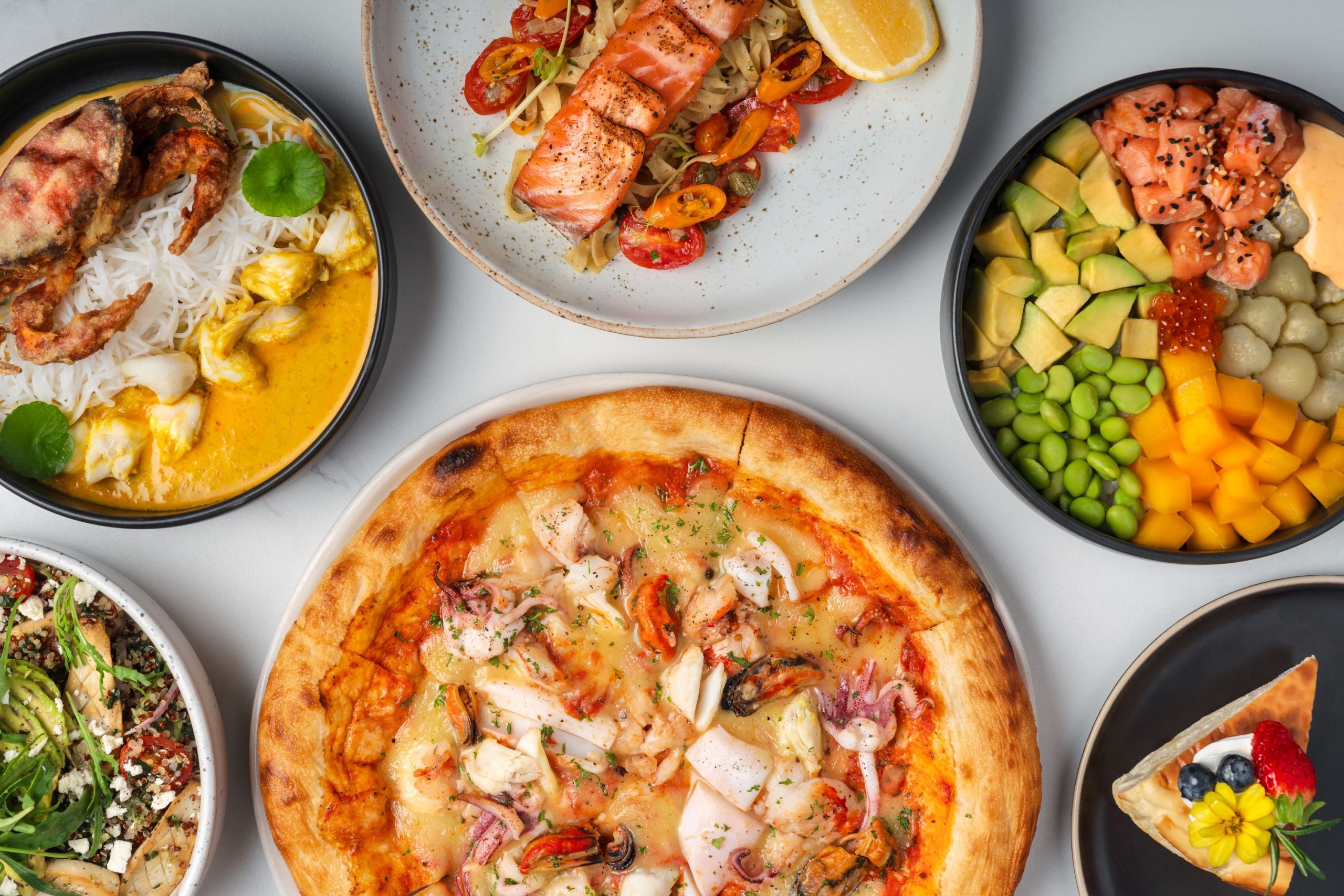 เมนูอาหารคอมฟอร์ทสไตล์เมดิเตอร์เรเนียนที่น่าลิ้มลองไม่แพ้กัน ได้แก่ พิซซ่าซีฟู้ด โดยซีฟู้ดส่งตรงถึงมือเชฟกิ่งจากหมู่บ้านชาวประมงหัวหิน หรือเส้นลิงกวินีผัดน้ำมันมะกอกเสิร์ฟพร้อมปลาแซลมอนตามธรรมชาติจากแอตแลนติก หรือหากคุณกำลังมองหามื้อเบา ๆ ระหว่างวัน ซุปหัวหอมคลาสสิครสชาติเข้มข้นคือเมนูที่พร้อมนำเสนอให้ได้ลิ้มลอง