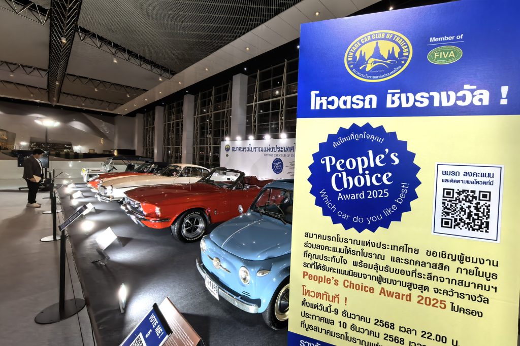 สมาคมรถโบราณแห่งประเทศไทย เชิญผู้ชมงาน “มหกรรมยานยนต์ ครั้งที่ 42” ร่วมโหวตรถโบราณ และรถคลาสสิคที่ประทับใจ ภายในบูธของสมาคมฯ พร้อมลุ้นรับของที่ระลึก รถที่ได้รับคะแนนจากผู้ชมงานสูงสุด จะคว้ารางวัล People’s Choice Award 2025 ไปครอง โดยเปิดให้โหวตถึงวันที่ 9 ธันวาคม 2568 เวลา 22.00 น. และประกาศผลวันที่ 10 ธันวาคม 2568 เวลา 14.00 น.
