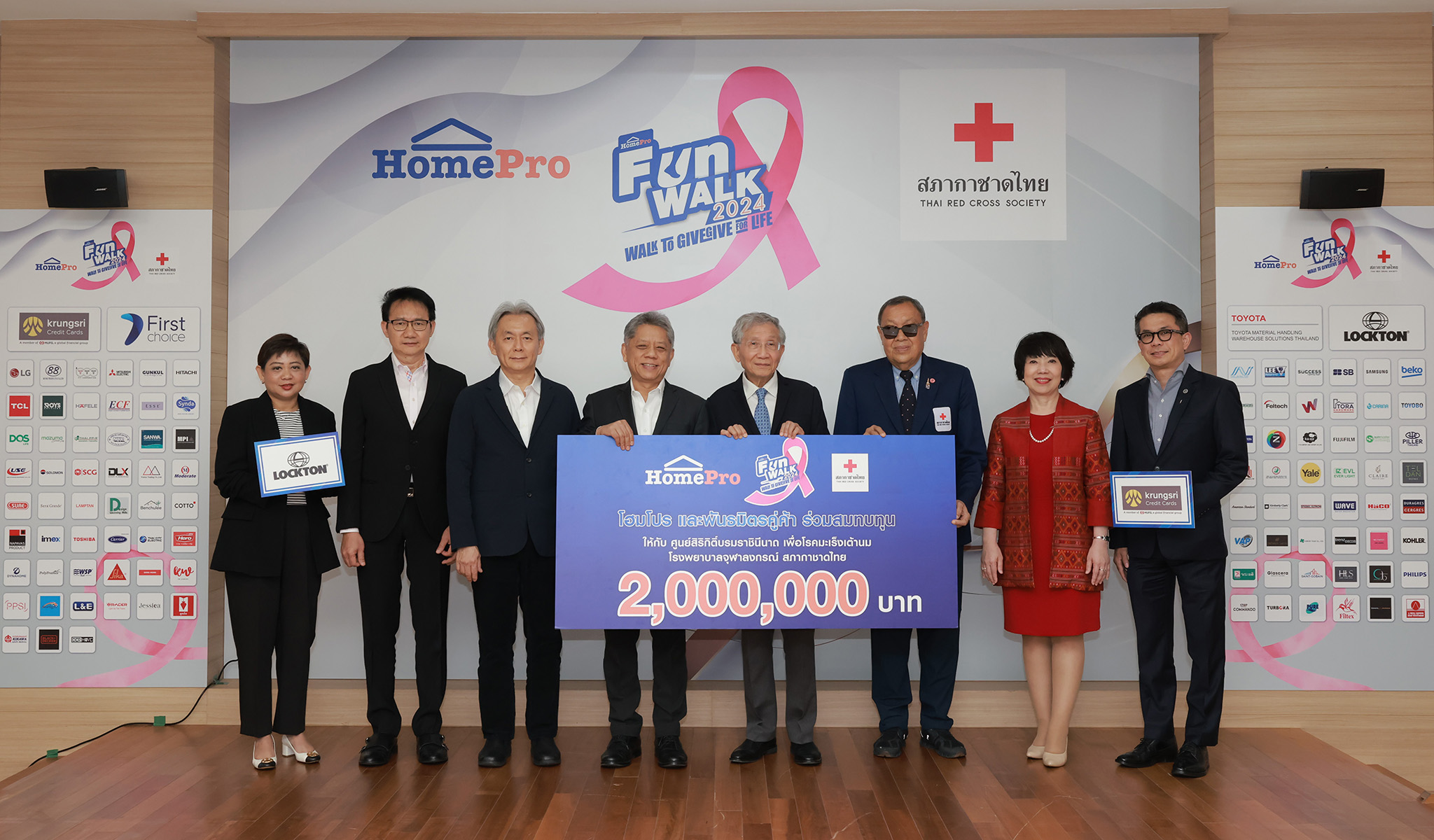 โฮมโปร จับมือคู่ค้าพันธมิตรโฮมโปร 107 บริษัท รวมพลังสร้างการให้ที่ยิ่งใหญ่ เปลี่ยนจำนวนก้าวเดินจากโครงการ “HomePro Fun Walk 2024” เป็นเงินบริจาครวม 2,000,000 บาท สมทบทุนเงินบริจาคให้กับ “ศูนย์สิริกิติ์บรมราชินีนาถเพื่อโรคมะเร็งเต้านม โรงพยาบาลจุฬาลงกรณ์ สภากาชาดไทย” สร้างโอกาสเข้าถึงการรักษาโรคมะเร็งเต้านมของคนไทยอย่างมีคุณภาพ พร้อมปลูกฝังให้พนักงานโฮมโปรเห็นความสำคัญในการดูแลสุขภาพและส่งต่อสุขภาพที่ดีให้กับสังคมอย่างยั่งยืน