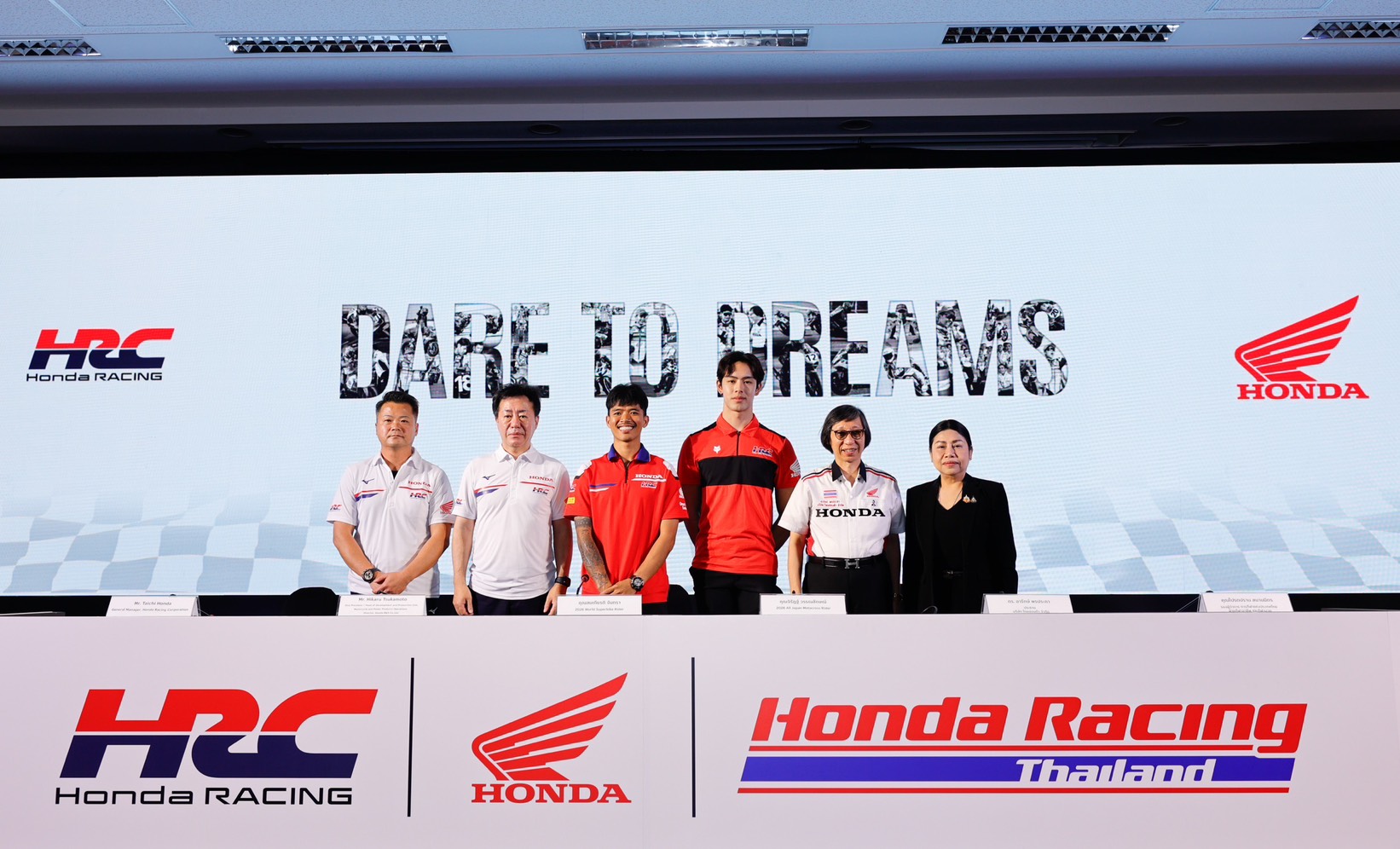 “ไทยฮอนด้า” ผู้นำวงการมอเตอร์สปอร์ตไทย แถลงนโยบายมอเตอร์สปอร์ตประจำปี 2026 ภายใต้คอนเซปต์ Dare To Dreams ยกระดับวงการมอเตอร์สปอร์ไทยอีกครั้ง ด้วยการส่งนักแข่งไทยเข้าสู่สังกัดทีมโรงงานระดับโลก ฮอนด้า เอชอาร์ซี (Honda HRC) ได้พร้อมกันถึง 2 คน ทั้งทางเรียบและทางฝุ่น นำโดย “ก้อง-สมเกียรติ” ในศึก เวิลด์ ซูเปอร์ไบค์ แชมเปี้ยนชิพ 2026 และ “นีโม่-จิรัฎฐ์” ในศึก ออลเจแปน โมโตครอส แชมเปี้ยนชิพ 2026 พร้อมส่งช่างไทยเรียนรู้เทคนิคจากทีมระดับโลกปูทางสู่อนาคต ขณะที่ “ฮอนด้า เรซซิ่ง ไทยแลนด์” เดินเครื่องเต็มสูบสร้างประวัติศาสตร์ครั้งแรกที่ส่งทีมลุยศึก เอเชีย โร้ด เรซซิ่ง แชมเปี้ยนชิพ 2026 พร้อมกัน 3 รุ่น โดยมี “ชิพ-นครินทร์” นำทีมล่าแชมป์เอเชีย หลังโชว์ผลงานสุดร้อนแรงในฤดูกาลที่ผ่านมา