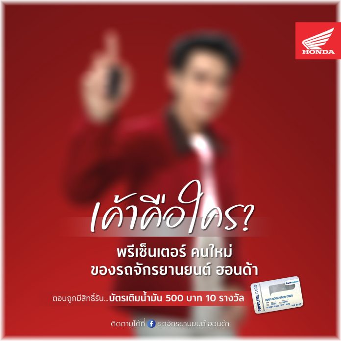 ไทยฮอนด้า เปิดตัวกิจกรรมสุดพิเศษ “ทายพรีเซ็นเตอร์คนใหม่ของครอบครัวฮอนด้า” เชิญชวนประชาชนทั่วประเทศร่วมสนุก ลุ้นของรางวัลสุดคุ้ม เพียงทายให้ถูกว่าใครคือพรีเซ็นเตอร์คนใหม่ของไทยฮอนด้า พร้อมทายชื่อรถจักรยานยนต์รุ่นใหม่ที่กำลังจะเปิดตัวเร็ว ๆ นี้ โดยลุ้นรับบัตรเติมน้ำมันมูลค่า 500 บาท จำนวน 10 รางวัล สำหรับผู้ร่วมกิจกรรมที่ตอบถูกเป็น 10 คนแรก