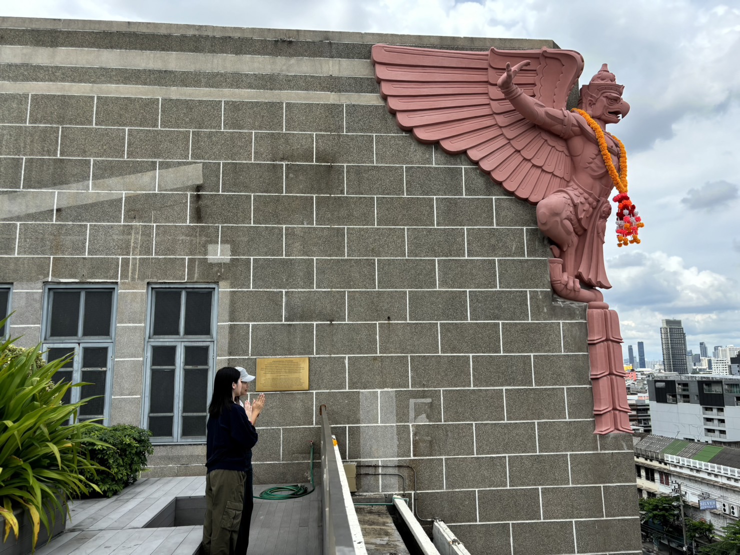 อีกสิ่งที่ไม่เหมือนใครก็คือการเข้าถึงองค์พญาครุฑยุดแตรงอน ที่ทุกคนสามารถเข้าถึงได้ง่าย ๆ ไม่ว่าจะเดินขึ้นบันไดชมความสวยงามทางศิลปะภายในตัวอาคารก่อน หรือจะพุ่งตรงไปที่ดาดฟ้าเพื่อสักการะองค์พญาครุฑด้านบนเลยก็ได้ โดยยังต้องบอกอีกว่าการมาสักการะองค์พญาครุฑที่นี่จะไม่มีพิธีหรือเครื่องสักการะเหมือนที่อื่น ๆ ทุกคนสามารถมาขอพรได้ด้วยใจ คนที่มาขอพรส่วนใหญ่จะเป็นเรื่องความสำเร็จในกลุ่มนักเรียนนักศึกษา ความก้าวหน้าในอาชีพการงานและอำนาจวาสนา โดยเฉพาะกลุ่มที่ทำงานราชการและที่เกี่ยวข้อง ความแคล้วคลาดปลอดภัยจากอันตรายอุบัติเหตุ นอกจากนี้ ใครที่ทำงานในด้านการสื่อสาร แวดวงโฆษณา คอนเทนท์ครีเอทีฟ รวมถึงประชาสัมพันธ์ ก็ควรเดินทางมา ณ ที่แห่งนี้ เพราะที่นี่คือต้นตำรับองค์กรสื่อสารแรกของประเทศไทยที่เดินทางอย่างมั่นคงมาจนถึง 140 ปี นั่นเอง