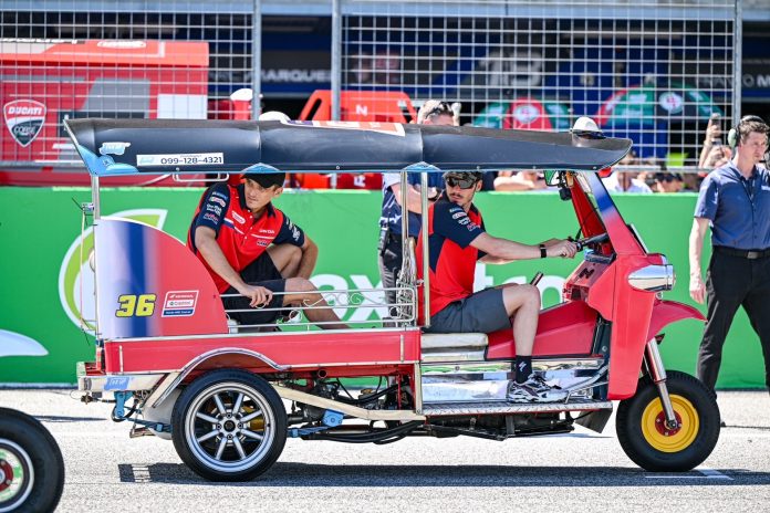 โดย 4 นักบิดจาก ฮอนด้า นำโดย “โจอัน เมียร์” นักบิดสแปนิชดีกรีแชมป์โลกปี 2020 จาก ฮอนด้า เอชอาร์ซี คาสตรอล ควงทีมเมทชาวอิตาเลียนอย่าง “ลูก้า มารินี” ลงควบรถแข่งตุ๊กตุ๊กประดับลายสีแดงประจำทีม พร้อมติดเบอร์ 36 และ 10 ลงสนาม