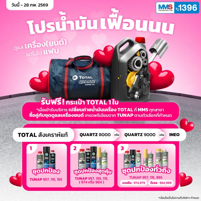 บริษัท มาสเตอร์ มอเตอร์ เซอร์วิสเซส (ประเทศไทย) จำกัด หรือ เอ็มเอ็มเอส คาร์ เซอร์วิส แอนด์ ไทร์ ภายใต้บริษัท มิลเลนเนียม กรุ๊ป คอร์ปอเรชั่น (เอเชีย) จำกัด (มหาชน) ศูนย์บริการรถยนต์ครบวงจร (One-Stop Service) สำหรับรถญี่ปุ่นและยุโรปที่หมดระยะการรับประกัน จัดโปรโมชั่นฉลองเทศกาลวาเลนไทน์และตรุษจีน กับหลากหลายข้อเสนอพิเศษ เพื่อให้ลูกค้าได้ดูแลรถยนต์คันโปรดอย่างคุ้มค่าที่สุด ตลอดเดือนกุมภาพันธ์ 2569 ที่ศูนย์บริการ เอ็มเอ็มเอส คาร์ เซอร์วิส แอนด์ ไทร์ ทุกสาขา ทั่วประเทศ