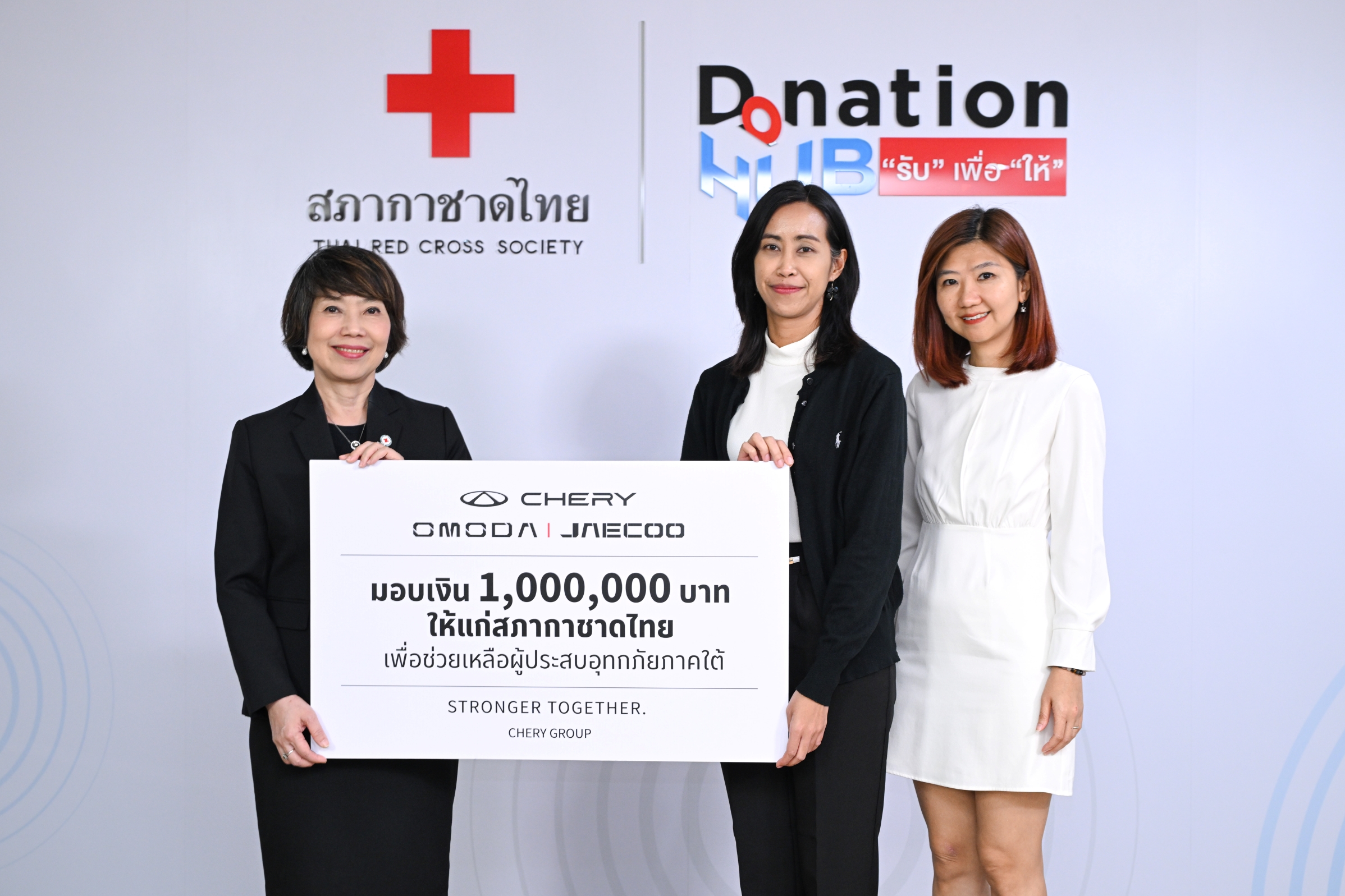 CHERY Group นำโดย OMODA & JAECOO ผู้นำด้านนวัตกรรมยานยนต์พลังงานไฟฟ้าระดับพรีเมียม โดยมีคุณวรางคณา ศศิธร ผู้อำนวยการบริหาร บริษัท โอโมดา แอนด์ เจคู (ประเทศไทย) จำกัด มอบเงินบริจาคจำนวน 1 ล้านบาทให้แก่สภากาชาดไทย ซึ่งคุณจันทร์ประภา วิชิตชลชัย รองผู้อำนวยการสำนักงานจัดหารายได้ สภากาชาดไทย เป็นผู้รับมอบ ทั้งนี้ เงินบริจาคดังกล่าวจะนำไปใช้ในการช่วยเหลือและบรรเทาทุกข์ผู้ประสบอุทกภัยในพื้นที่ภาคใต้ที่ได้รับผลกระทบจากเหตุการณ์น้ำท่วมต่อไป