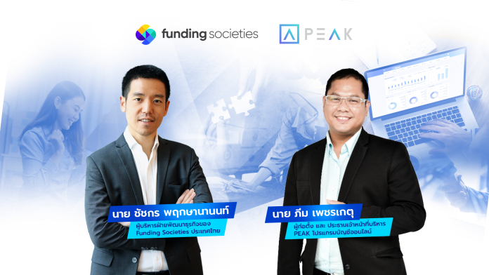 Funding Societies แพลตฟอร์มการเงินดิจิทัลแบบครบวงจรสำหรับธุรกิจ SME ที่ใหญ่ที่สุดในภูมิภาคเอเชียตะวันออกเฉียงใต้ จับมือ PEAK ผู้นำนวัตกรรมโปรแกรมบัญชีออนไลน์ เสริมเขี้ยวเล็บ SME ขยายธุรกิจคว้าโอกาสในการเติบโตได้อย่างรวดเร็ว พร้อมเพิ่มสภาพคล่องผ่านเงินทุนทางเลือกเพื่อธุรกิจ ได้สูงสุด 20 ล้านบาท ด้วยการใช้ฐานข้อมูลด้านบัญชีในระบบ PEAK มายื่นประกอบการพิจารณาเงินทุนกับ Funding Societies ผ่านช่องทางออนไลน์ ไม่ต้องใช้หลักทรัพย์ค้ำประกัน รู้ผลภายใน 7 วัน ส่ง SME ไทยเติบโตอย่างแข็งแกร่ง