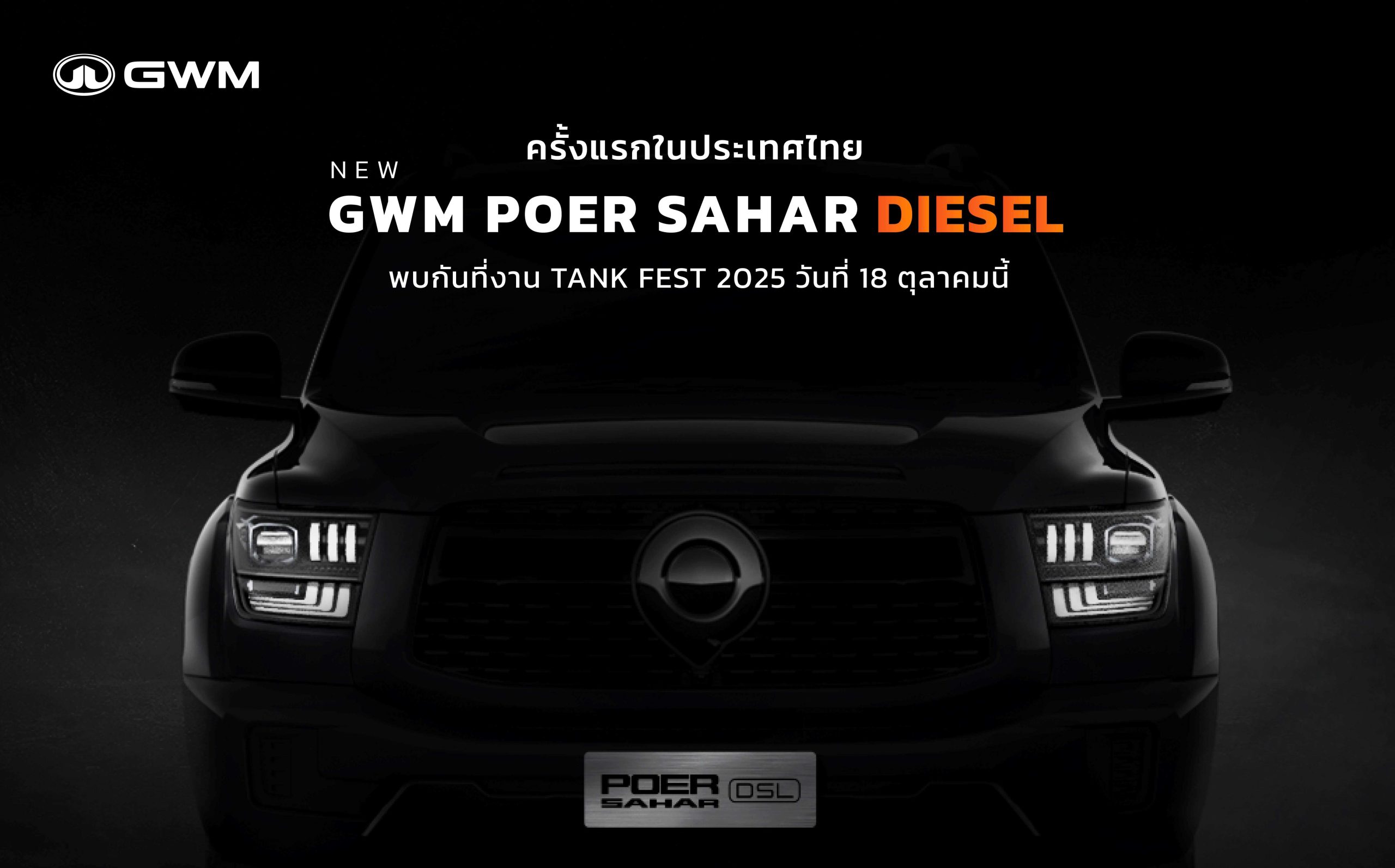 GWM จุดกระแสดีเซลอีกครั้งเตรียมเผยโฉม NEW GWM POER SAHAR DIESEL ครั้งแรกในไทย!ในงาน TANK FEST 2025 and TOP RANK TANK MOD พร้อมกัน 18 ตุลาคม 2568 นี้