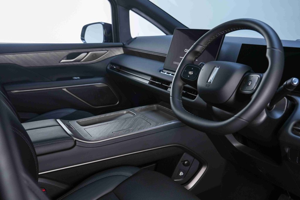 ด้านการออกแบบภายในเน้นความโปร่งโล่ง เดินได้สะดวกสบายด้วยความสูงภายใน 1,277 มม. ขณะที่ช่องทางเดินกลางกว้างถึง 170 มม. หรูหราด้วยวัสดุหนัง NAPPA สัมผัสนุ่ม หรูหรา ทนทาน ไม่ระคายเคืองผิว ระบายอากาศได้ดี และทำความสะอาดง่าย เบาะแถวสองแบบ Zero-Gravity ทำให้ผู้โดยสารแถวสองรู้สึกสบายเหมือนนั่งอยู่ในอวกาศที่ปราศจากแรงโน้มถ่วง ซึ่งได้รับแรงบันดาลใจจากเทคโนโลยีการบินและอวกาศของ NASA โดยสามารถปรับองศาเบาะให้อยู่ใน “Golden Angle” ซึ่งเป็นมุมที่เหมาะสมที่สุดสำหรับสรีระมนุษย์ โดยมีมุมลำตัวที่ 127° และมุมต้นขา-น่องที่ 132° พร้อมจัดตำแหน่งหัวใจและหัวเข่าให้อยู่ในระดับเดียวกัน เพื่อช่วยกระจายแรงกดทั่วเบาะอย่างสมดุล