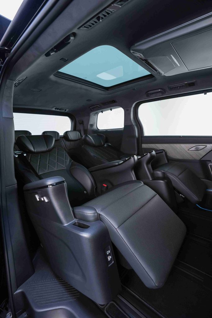 โดยร่างกายของผู้โดยสารไม่ได้สัมผัสกับชิ้นส่วนหรือพื้นของรถ ลดแรงกดทับ ลดความเมื่อยล้า และเพิ่มความผ่อนคลายในการโดยสาร ถือเป็นมาตรฐานใหม่ของรถยนต์ Luxury MPV อีกทั้งยังมาพร้อมระบบเบาะนวดไฟฟ้า 6 รูปแบบ และระบบเบาะระบายอากาศที่พนักพิงและที่นั่ง มอบความผ่อนคลายขั้นสุดตลอดการเดินทาง ในขณะที่เบาะแถวที่ 1 เป็นเบาะคนขับปรับไฟฟ้า 8 ทิศทาง พร้อมระบบบันทึกตำแหน่งและระบบ Welcome Seat รวมถึงระบบดันหลังไฟฟ้าและระบบนวดไฟฟ้า 10 จุดที่ช่วยลดความเมื่อยล้า เบาะผู้โดยสารตอนหน้าเป็นแบบปรับไฟฟ้า 6 ทิศทาง และมีระบบระบายอากาศที่พนักพิงและที่นั่ง และเบาะแถวที่ 3 พับได้แบบ 4:6 ช่วยเพิ่มพื้นที่จัดเก็บสัมภาระเมื่อจำเป็น สะดวกสบายไปกับตู้เย็นภายในรถ (Car Refrigerator) ความจุ 12.5 ลิตร พร้อมดีไซน์ Double-Opening เปิดได้ทั้งด้านหน้า (Front Armrest) และด้านหลังแบบลิ้นชัก รองรับทั้งโหมดทำความเย็น 0–15°C และโหมดอุ่น 35–50°C ระบบไฟสร้างบรรยากาศ 64 สี หน้าจอ HUD และจอมัลติมีเดียขนาดใหญ่ รวมถึงการจัดวางพื้นที่ที่เอื้อต่อความสะดวกสบายของผู้โดยสารทุกแถว เพื่อมอบประสบการณ์การเดินทางที่เหนือระดับทั้งความหรูหราและฟังก์ชันล้ำสมัย