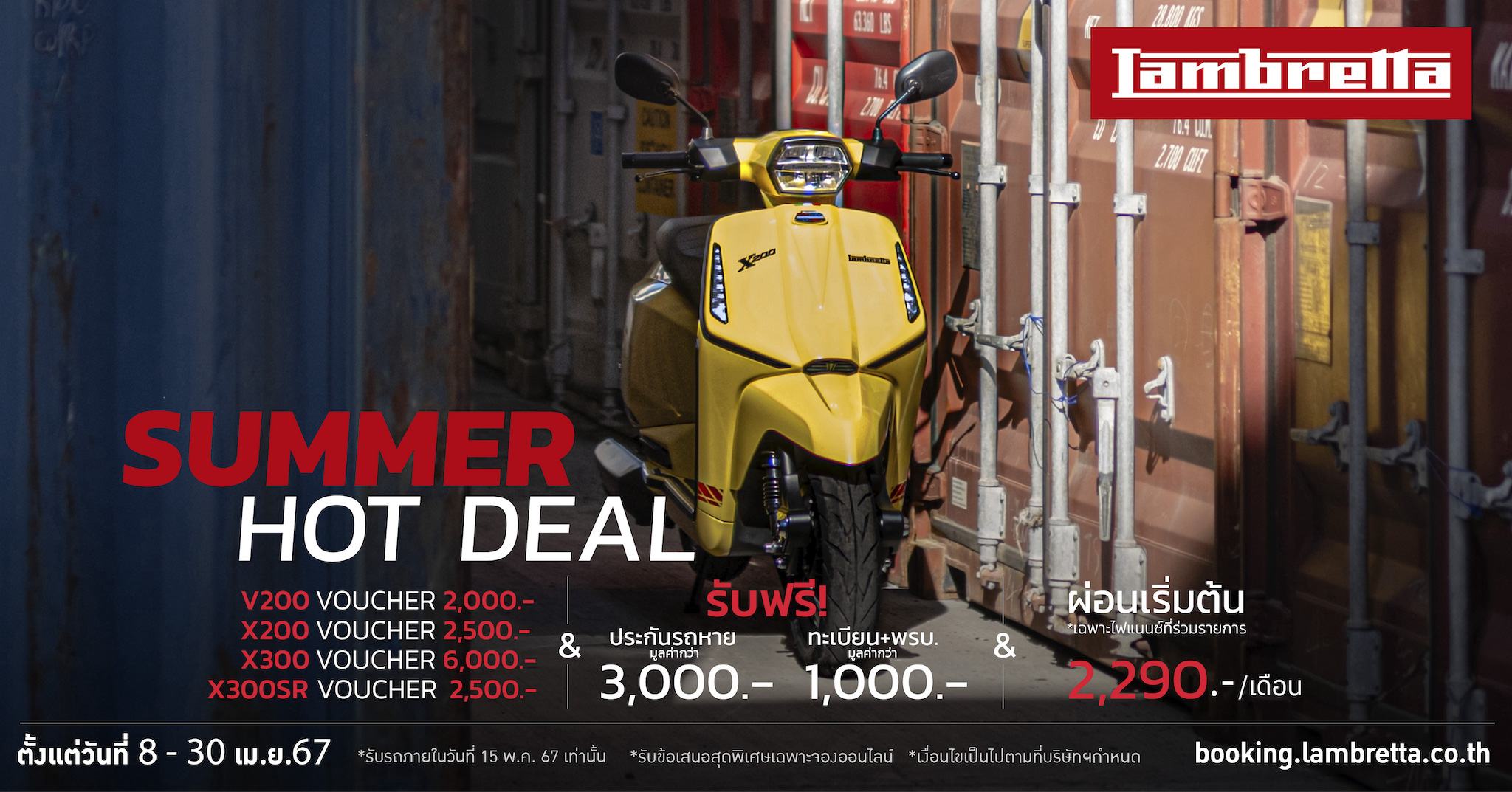 เพียงจองรถ LAMBRETTA ผ่านช่องทางออนไลน์ https://booking.lambretta.co.th ตั้งแต่วันนี้ ถึง 30 เมษายน 2567