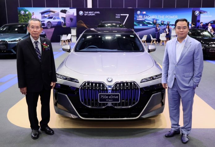 ดร. สัณหวุฒิ ธรรมชวนวิริยะ (ขวา) ประธานเจ้าหน้าที่บริหาร บริษัท มิลเลนเนียม กรุ๊ป คอร์ปอเรชั่น (เอเชีย) จำกัด (มหาชน) ผู้นำธุรกิจค้าปลีกยานยนต์ Lifestyle Mobility Ecosystem ที่มุ่งตอบสนองไลฟ์สไตล์การเดินทางอย่างครบวงจร ร่วมพิธีเปิดบูธ Millennium Auto Group โดยมี นายจรวย ขันมณี (ซ้าย) ประธานกรรมการบริหาร บริษัท ยานยนต์สแควร์ กรุ๊ป และ ประธานกรรมการอำนวยการจัดงาน Bangkok International Grand Motor Sale 2023 ร่วมแสดงความยินดี ภายในงาน MGC-ASIAได้ยกทัพยานยนต์หรู อาทิ BMW, MINI, BMW Motorrad, Harley-Davidson พร้อมแบรนด์พันธมิตรอย่าง Jeep และ Peugeot เข้าร่วมงาน Big Motor Sale 2023 มหกรรมเปิดโลกยานยนต์ ซึ่งจัดขึ้นระหว่างวันที่ 25 สิงหาคม – 3 กันยายน 2566 ณ ศูนย์นิทรรศการและการประชุมไบเทค บางนา