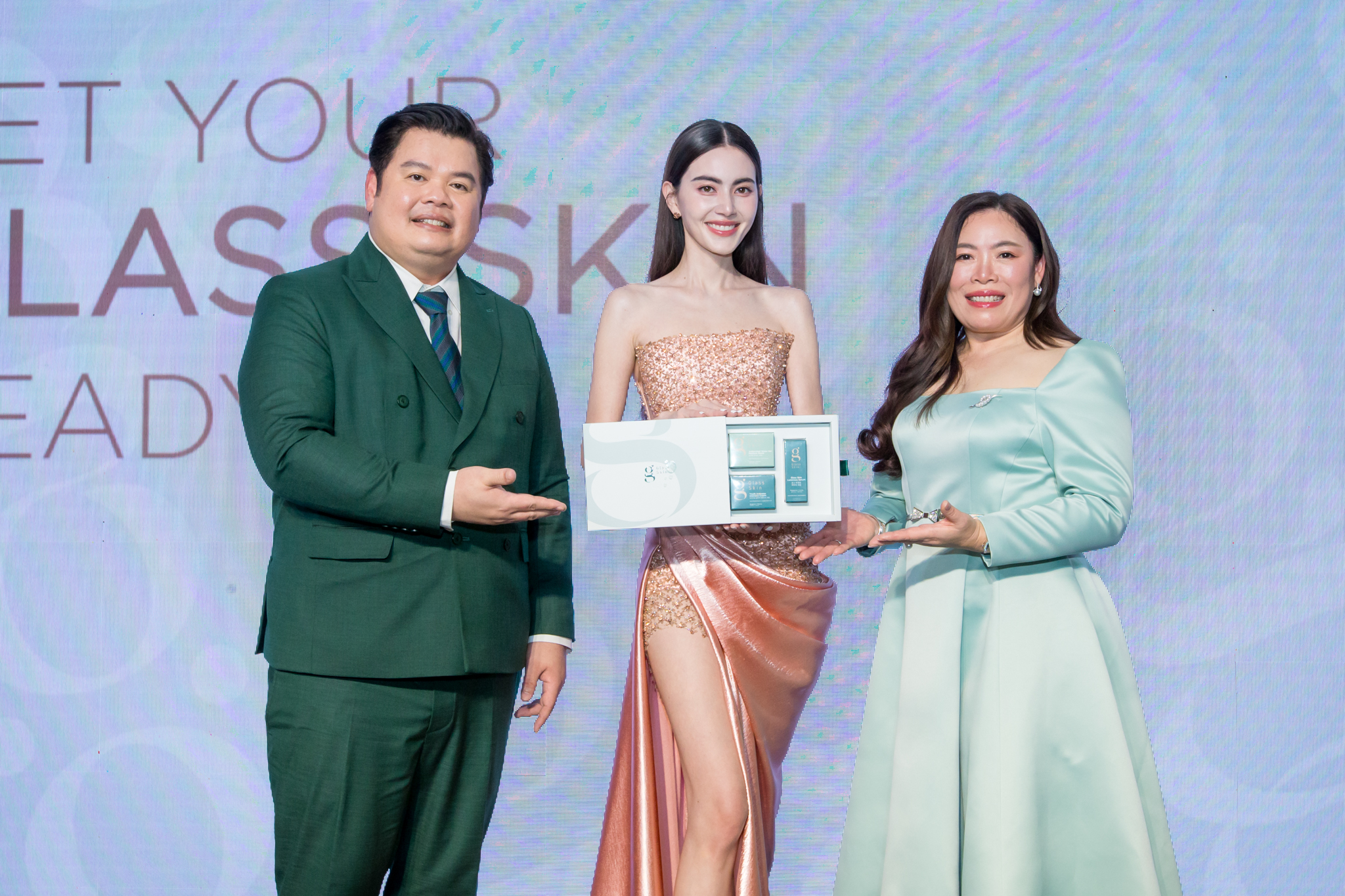 ฤทธิชัย ศรีวิจารย์ ประธานกรรมการ บริษัท เอ็มพี กรุ๊ป (ประเทศไทย) จำกัด เปิดเผยว่า “GLASS SKIN” เป็นแบรนด์สกินแคร์ที่ทาง เอ็มพี กรุ๊ป ได้ค้นคว้าวิจัยพัฒนาร่วมกับทีมนักวิจัยจากมหาวิทยาลัยจุฬาลงกรณ์มานานกว่า 30 ปี ด้วยความมุ่งมั่นในการสร้างสรรค์นวัตกรรมความงามที่สามารถตอบโจทย์ในการมอบผิวฉ่ำวาวพร้อมใช้ ไม่ใช่แค่เพียงเปลือกนอก แต่เป็นผิวสวยสุขภาพดีขั้นสูงสุดที่มาจากภายใน เผยความเรียบเนียน เหมือน “ผิวกระจก” จนได้ค้นพบนวัตกรรม PICO PEPTIDE สารสกัดจาก SNAIL MANTLE MUCIN ที่มีโมเลกุลเล็กละเอียด บำรุงล้ำลึกสู่ชั้นผิวถึง 3 เลเยอร์ อุดมไปด้วยสารสกัดที่มีประสิทธิภาพ ได้แก่ ALLANTOIN ฟื้นฟูเซลล์ผิวลดริ้วรอย, GAG เพิ่มไฮยารูลอนให้ผิวชั้นหนังแท้ และ MULTI-PEPTIDE กระตุ้นคอลลาเจนและอิลาสตินให้ผิวดูเรียบเนียนเด้ง เพื่องานผิวพร้อมใช้ สุขภาพดีจากภายใน เรียบเนียน คล้าย “ผิวกระจก” โดยทุกผลิตภัณฑ์ของแบรนด์ผลิตขึ้นด้วยมาตรฐานระดับโลกโดย HANKOOK COSMETICS MANUFACTURING CO., LTD การันตีคุณภาพจาก บริษัทซัมซุง ประเทศเกาหลีใต้