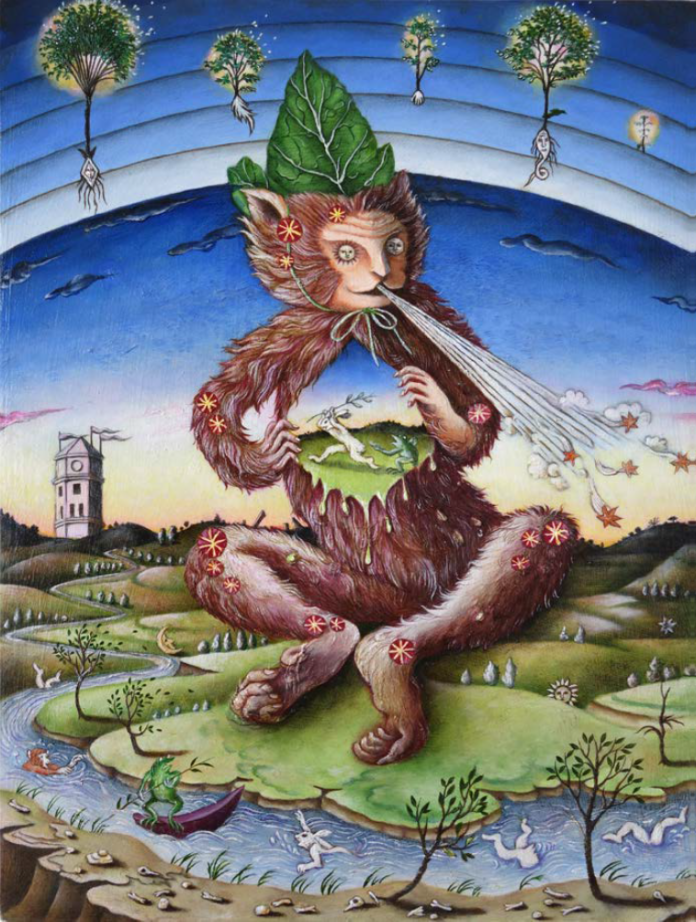 หัวใจสำคัญของนิทรรศการของมัตสึนากะคือการพลิกผันอย่างรุนแรงของเรื่องราว Dürer’s Christian Apocalypse ต่างจากเรื่องเล่าของ Dürer ที่แสดงให้เห็นถึงการพิพากษาอันศักดิ์สิทธิ์จากเบื้องบน Apocalypse (เทพเจ้า) ของมัตสึนากะมีลักษณะที่คลุมเครือ ไร้ความหมายทางศาสนา และแทนที่จะเสนอมุมมองแบบองค์รวมเกี่ยวกับความเชื่อมโยงระหว่างกันของทุกสิ่ง งานศิลปะของเธอทำหน้าที่เป็นรูปแบบหนึ่งของการสื่อสารจากสิ่งแวดล้อมสู่สังคมมนุษย์ โดยเน้นย้ำถึงการพึ่งพาซึ่งกันและกันจากภายใน