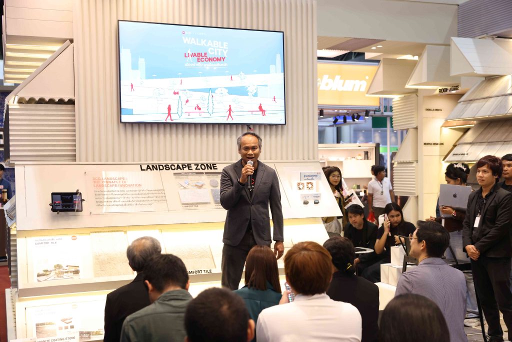SCG (เอสซีจี) ผู้นำนวัตกรรมวัสดุก่อสร้างและแลนด์สเคปของไทย โดยคุณไกรฤกษ์ คงคาศรี Chief Marketing Officer บริษัท สยามไฟเบอร์ซีเมนต์กรุ๊ป จำกัด จัดกิจกรรมเสวนา SCG Landscape X room ภายใต้หัวข้อ “Walkable City, Livable Economy– เมืองน่าเดิน พาเมืองเดินหน้า” ซึ่งจัดขึ้นใน “งานสถาปนิก’69” ณ อิมแพ็ค เมืองทองธานี ภายใต้วัตถุประสงค์หลักเพื่อแลกเปลี่ยนองค์ความรู้และมุมมอง เกี่ยวกับการยกระดับการพัฒนาเมืองครั้งใหญ่ผ่านโครงการ “สร้างเมืองน่าเดิน ให้เดินได้เดินดี ทุกวิถีทั่วไทย” มุ่งเน้นการยกระดับทางเท้าและพื้นที่สาธารณะ ให้เป็นโครงสร้างพื้นฐานสำคัญที่ช่วยยกระดับคุณภาพชีวิตของประชาชน และเป็นกลไกในการขับเคลื่อนเศรษฐกิจเมืองอย่างยั่งยืน ผ่านการบูรณาการระหว่างนโยบายภาครัฐ การออกแบบภูมิทัศน์ และการประยุกต์ใช้นวัตกรรมวัสดุในงานพัฒนาเมือง โดยได้รับเกียรติร่วมการเสวนาจาก