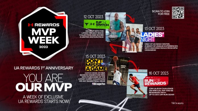 Under Armour (อันเดอร์ อาร์เมอร์) ผู้นำแบรนด์เสื้อผ้าและอุปกรณ์กีฬาชั้นนำจากประเทศสหรัฐอเมริกา เตรียมจัดแคมเปญ UA Rewards MVP Week สัปดาห์แห่งการมอบสิทธิพิเศษ ฉลองครบรอบหนึ่งปีโปรแกรม UA Rewards พร้อมจัดกิจกรรมสุดเอ็กซ์คลูซีฟและยกทัพโปรโมชันสินค้ามากมาย แทนคำขอบคุณสำหรับสมาชิก UA Rewards ทุกท่าน ไม่ว่าจะเป็น Project Rock ที่จะชวนสายฟิตมาเปลี่ยนสวิตซ์ เปิดพลังในตัวคุณ เอาใจสาวๆ สายสตรองกับกิจกรรม Ladies’ Night: Unwind And Shop สำหรับคอกีฬาบาสเกตบอล ห้ามพลาดกับ Don’t Miss A Game With NBA และปิดท้ายด้วย Run For Rewards; ยิ่งวิ่ง ยิ่งลด ให้สายวิ่งไประเบิดความฟิตพร้อมรับส่วนลดจุใจ ระหว่างวันที่ 12 – 22 ตุลาคม 2566 นี้